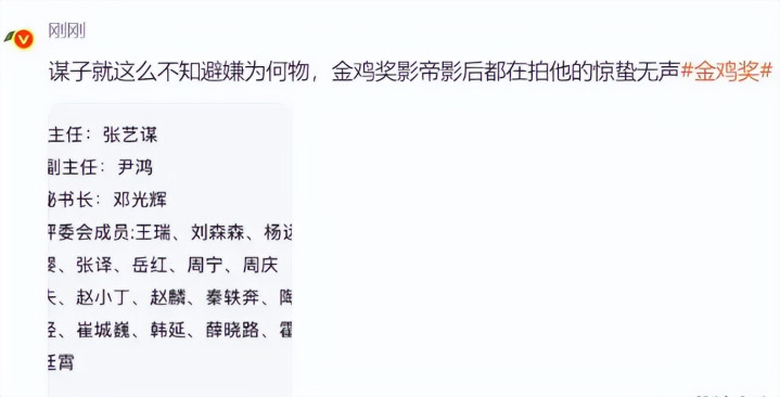 网友调侃“张艺谋怎么不知道避嫌,金鸡奖影帝影后都在拍他的新电影。”