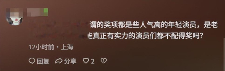 有网友直接怼道:"以前的金鸡影帝都是实打实的前辈,现在奖项都给了有流量的年轻演员,难道那些老戏骨们就不配得奖吗?"