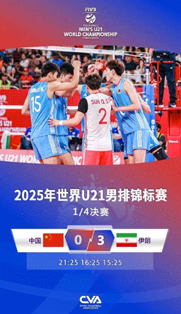 U21男排世锦赛: 中国队0-3不敌卫冕冠军伊朗队, 止步八强